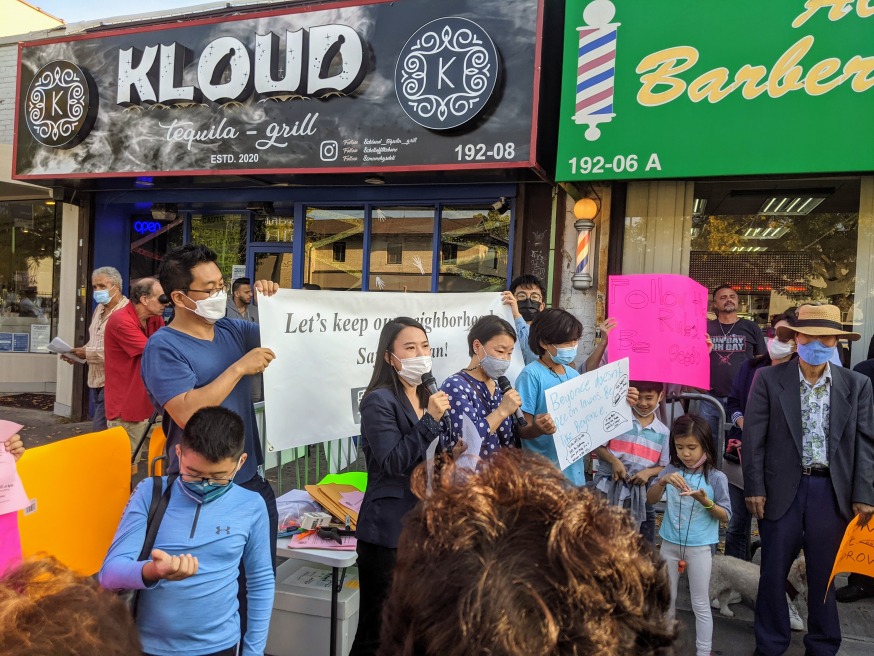 “Every day we find garbage, vomit, empty liquor bottles scattered around the block,” business owner Dosung Andrew Jung said. “Our safety is put at risk with drag racing by intoxicated patrons. Our quality of life is ruined with unacceptable noise from Kloud and sex acts inside parked cars at night. We demand City Hall shut down Kloud now!”