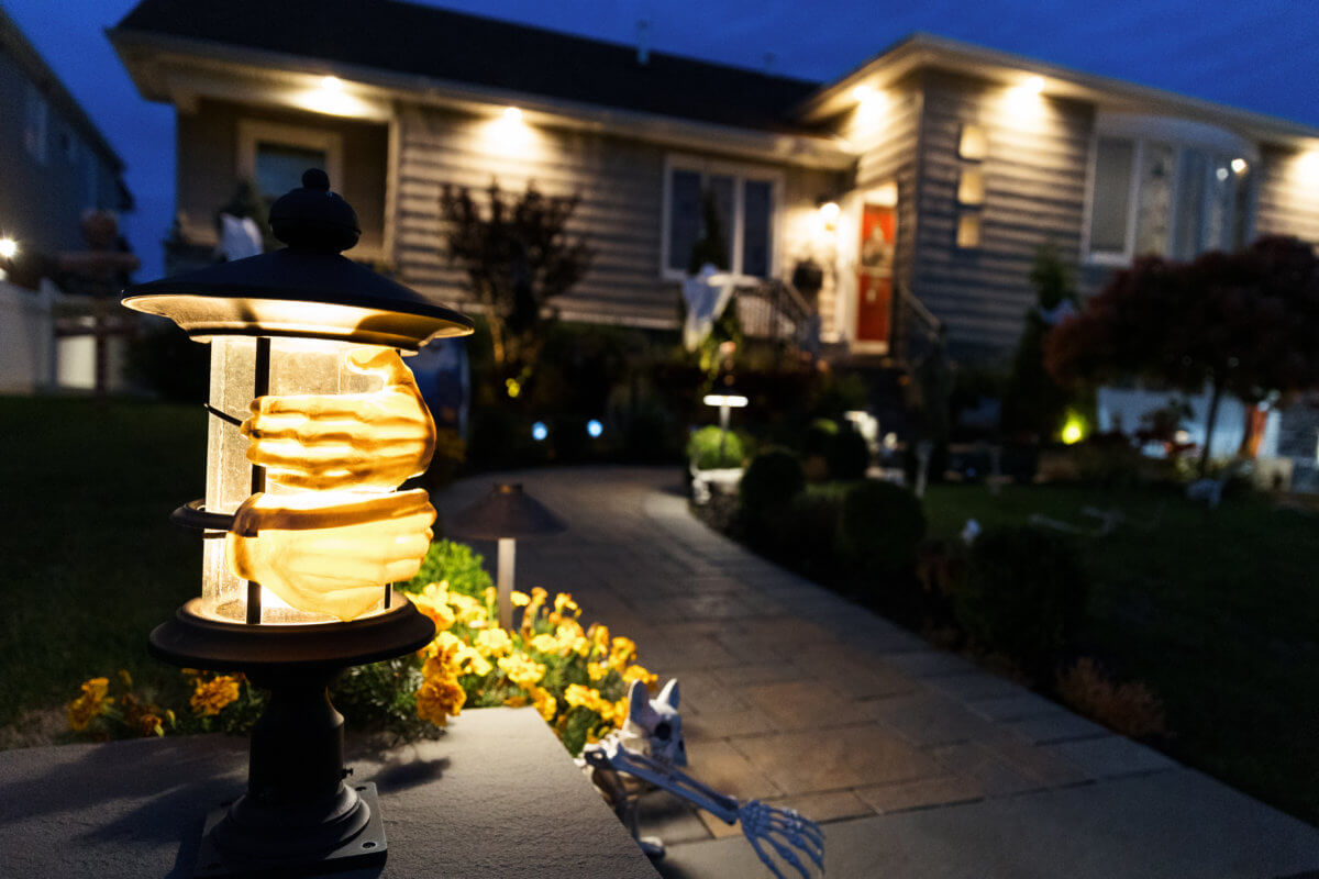 Halloween decorations light up the block outside a house in Howard Beach on Monday, Oct. 25, 2021. (Photo by Paul Frangipane)