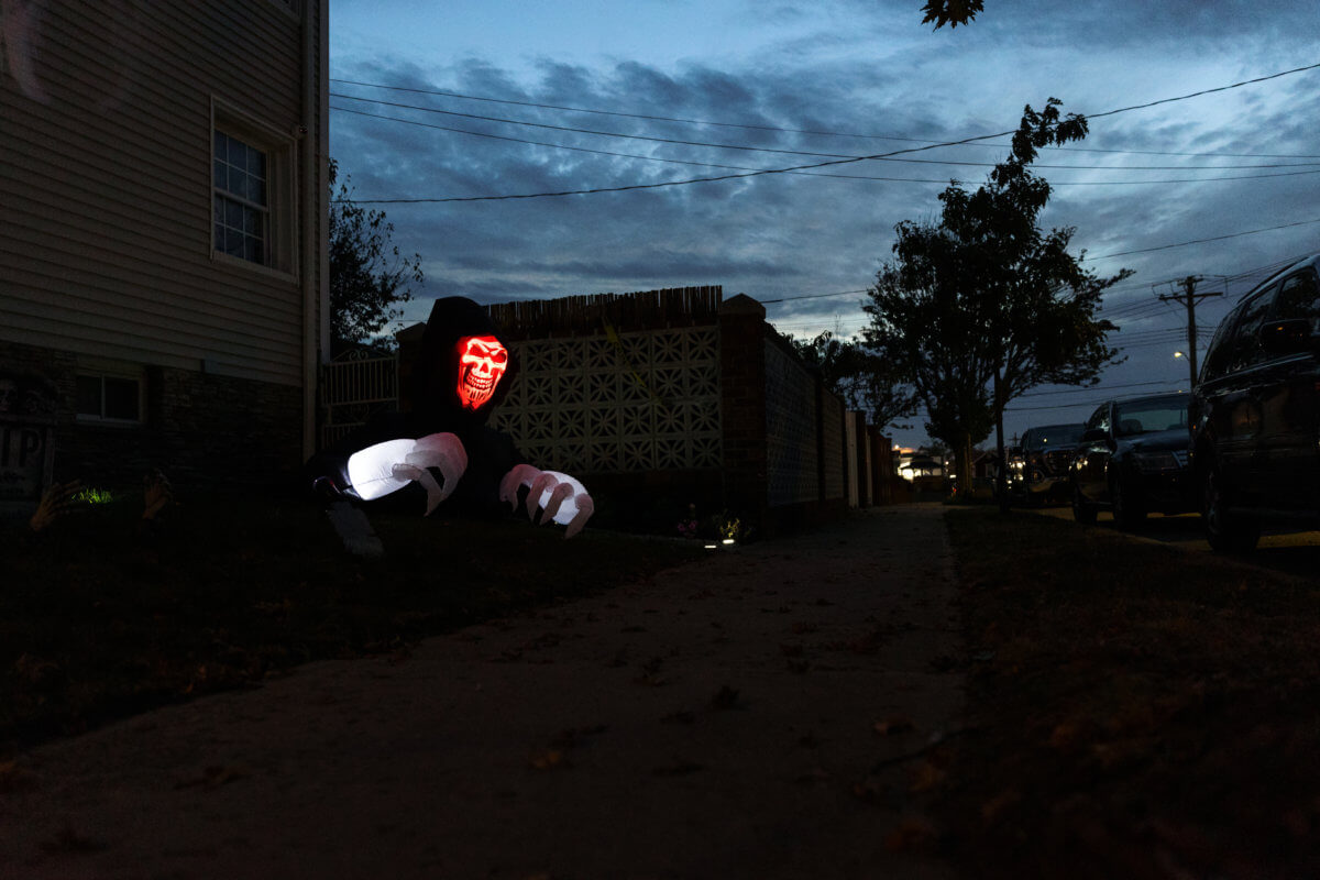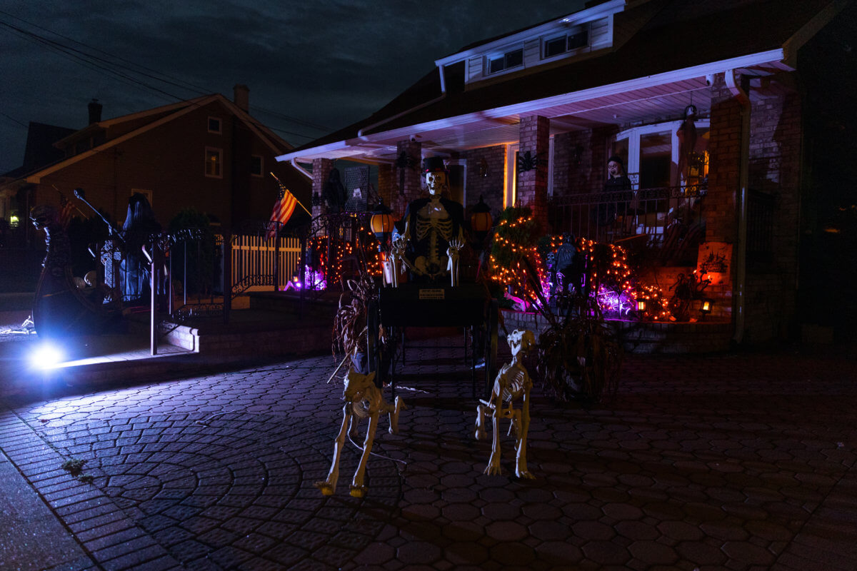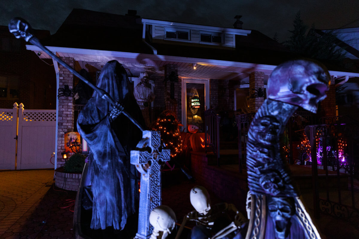 Halloween decorations light up the block outside a house in Howard Beach on Monday, Oct. 25, 2021. (Photo by Paul Frangipane)Halloween decorations light up the block outside a house in Howard Beach on Monday, Oct. 25, 2021. (Photo by Paul Frangipane)A family of skeletons adorn the lawn of a Howard Beach home on Monday, Oct. 25, 2021. Photo by Paul Frangipane)Michael Myers keeps an eye on neighbors from the second-floor window of a house in Howard Beach. (Photo by Paul Frangipane)A ghostly figure guards the sidewalk of a Howard Beach block on Monday, Oct. 25, 2021. (Photo by Paul Frangipane)A masked figure menacingly keeps watch over a Howard Beach block on Monday, Oct. 25, 2021. (Photo by Paul Frangipane)A skeleton driver commands his undead steeds from the front patio of a house in Howard Beach. (Photo by Paul Frangipane)A skeleton driver commands his undead steeds from the front patio of a house in Howard Beach. (Photo by Paul Frangipane)A group of skeletons and other Halloween decorations provide a spooky foreground for a home in Howard Beach. (Photo by Paul Frangipane)A group of skeletons and other Halloween decorations provide a spooky foreground for a home in Howard Beach. (Photo by Paul Frangipane)