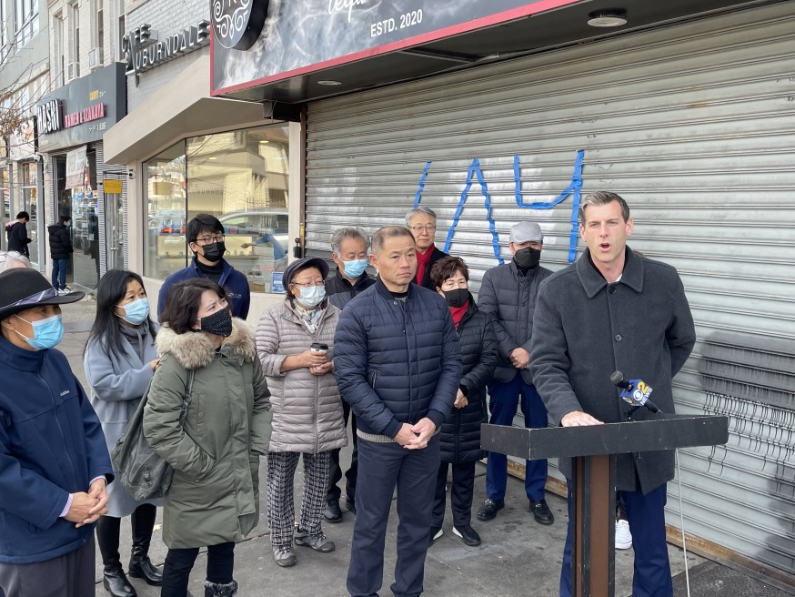 Elected officials held a press conference outside Kloud Tequila Grill Saturday to announce that the troublesome bar’s liquor license has been temporarily suspended (Photo courtesy of Assembly Member Edward Braunstein’s Office)