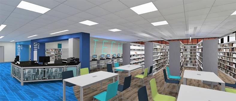 The revamp involves renovating the full interior with updated technology and furniture, creating a designated teen area and constructing a new state-of-the-art multipurpose community room with audiovisual equipment.