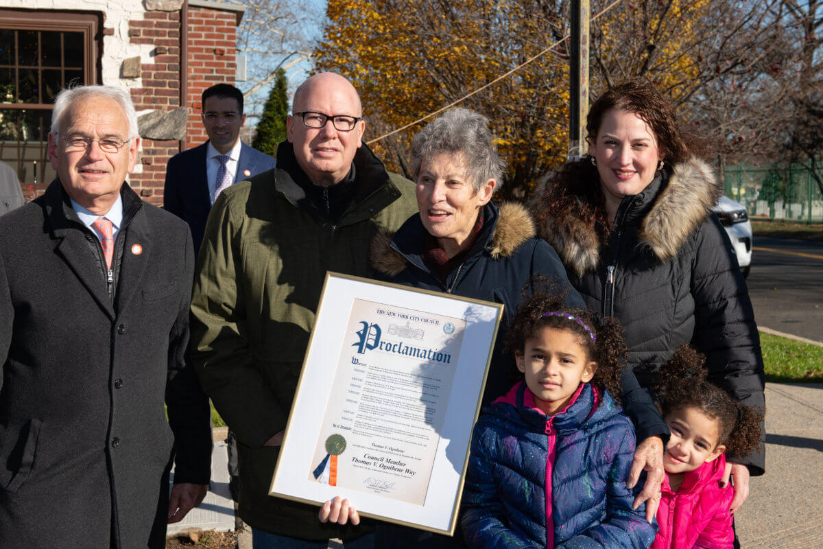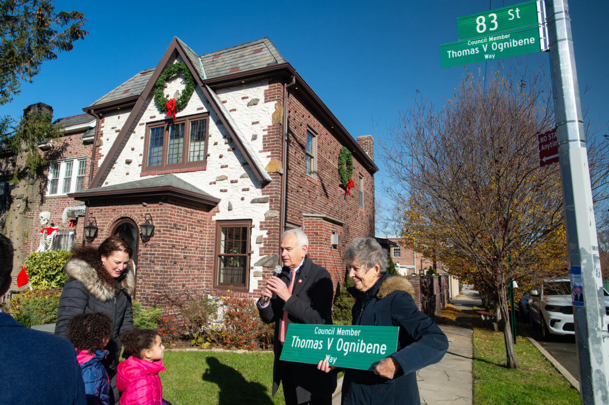 “Council member and Minority Leader Thomas V. Ognibene is a credit to the civic spirit of our neighborhood and this street co-naming, very near to his home, will help his legacy to be remembered,” Holden said. “I was proud to sponsor it and very pleased to hear so many fond memories of how Tom touched so many lives. Not only was he a tremendously gifted politician and dedicated public servant, but he was also extremely generous with his time and sage advice to the younger elected officials who spoke so fondly of him today.”