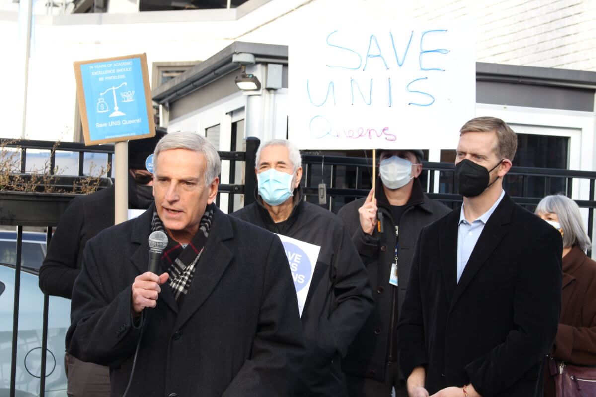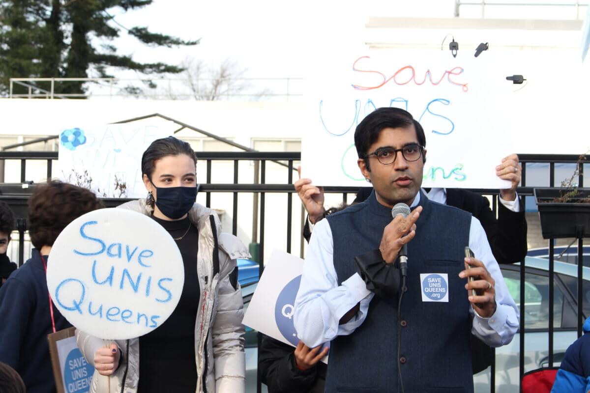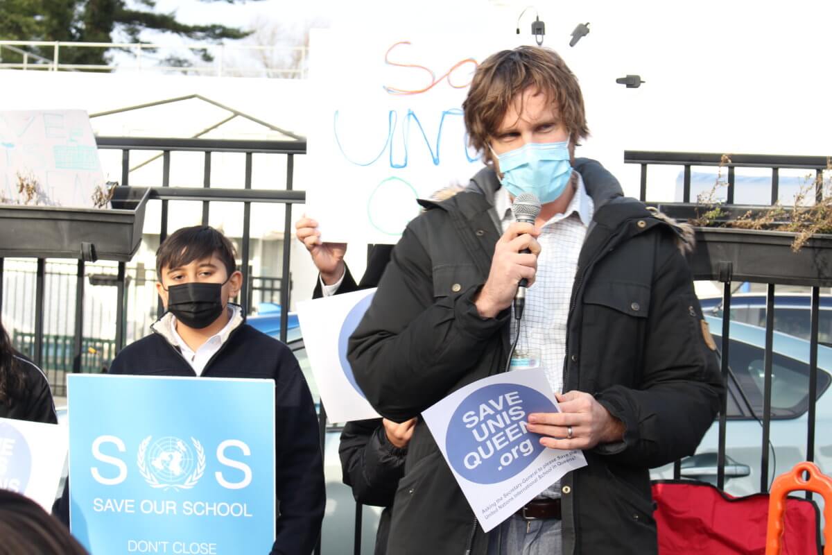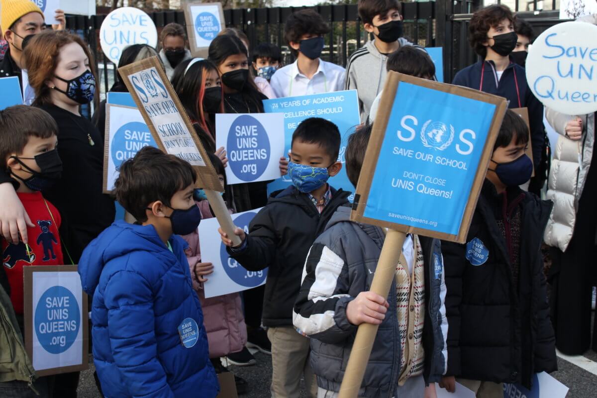 Queens lawmakers joined parents, teachers, alumni and students outside of the United Nations International School (UNIS) in Jamaica for a rally on Friday, Dec. 10, calling on the secretary-general of the United Nations, Antonio Guterres, to suspend the decision to close the school.