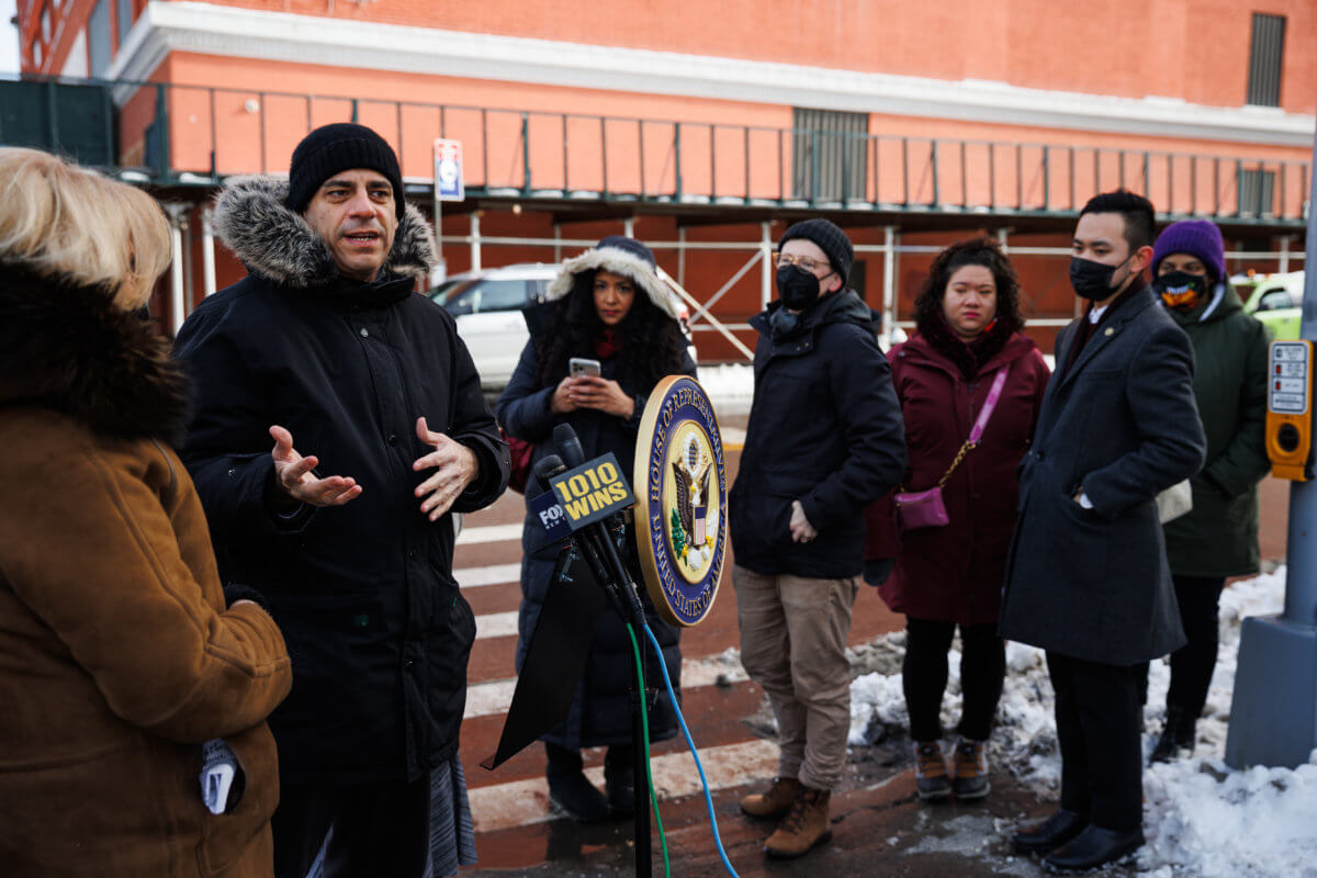 Maloney and others gathered outside the New York City Housing Authority (NYCHA) Queensbridge Houses to comment on the harmful effects power plants often have on underserved communities.