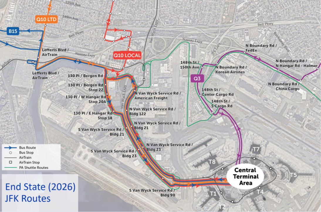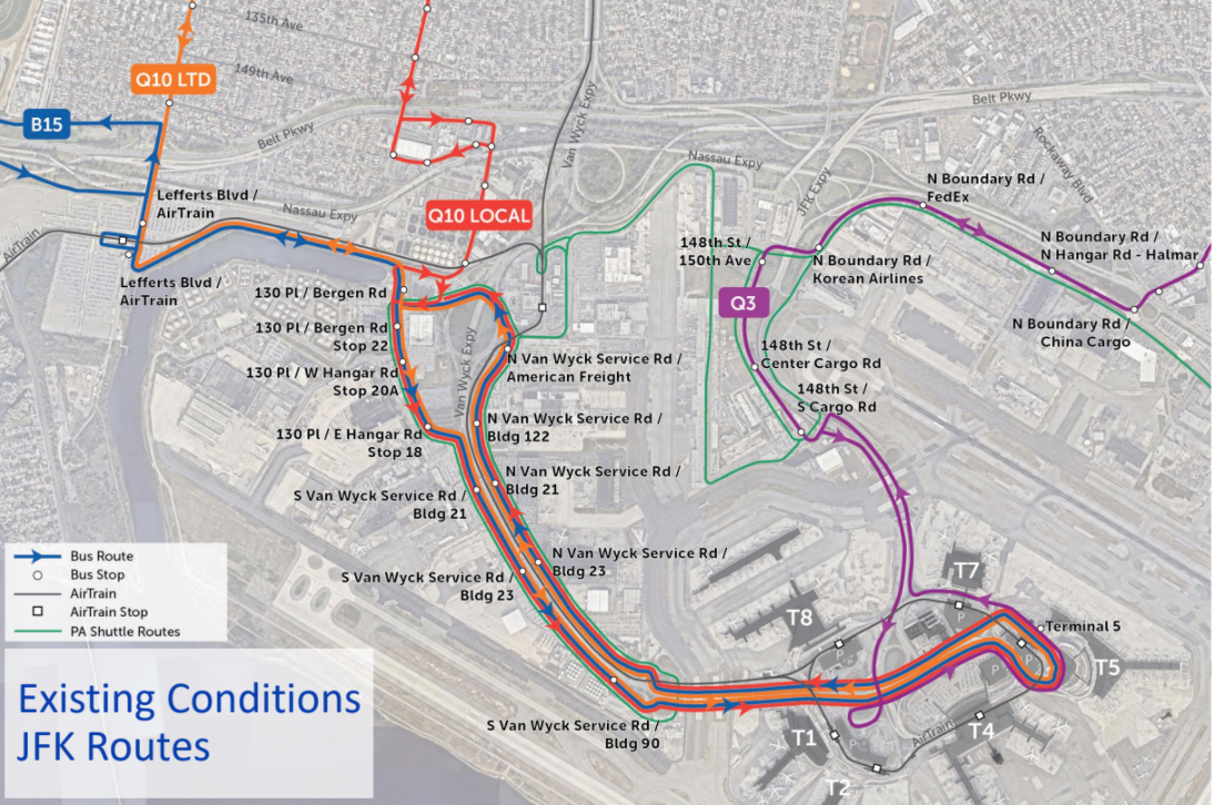 There are four MTA bus routes that currently serve JFK Airport: the B15, Q10 Local, Q10 Limited and Q3.