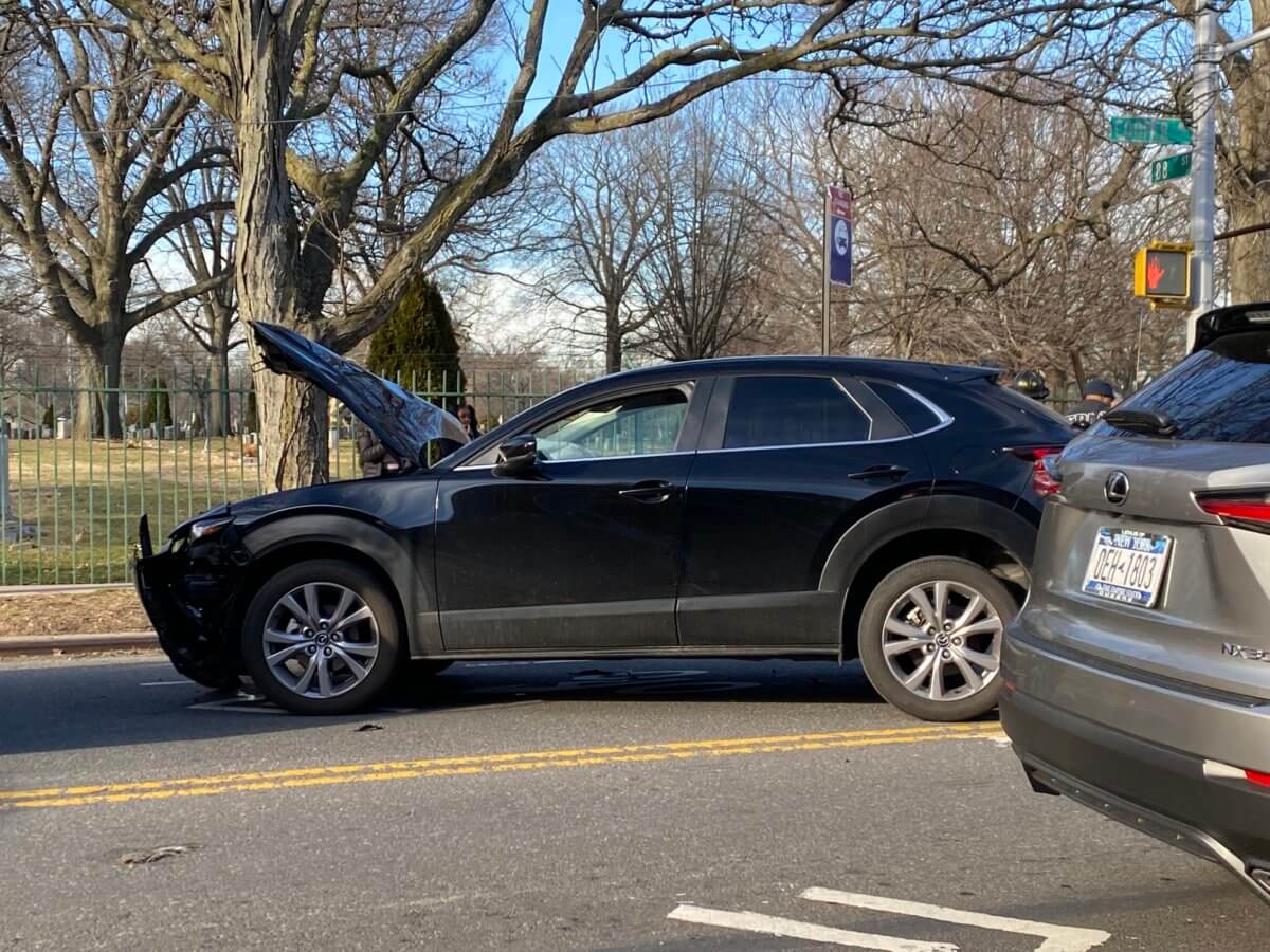 According to the investigation, a 2021 Mazda CX-30 was on Cooper Avenue approaching 88th Street when the scooter struck the vehicle, ejecting both riders. A 30-year-old man who was driving the Mazda, and a 27-year-old woman who was in the front passenger seat, were taken by EMS to Jamaica Hospital Center where they were treated and released, police said.
