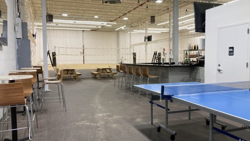 The 17,000 square foot complex consists of three sand-based beach volleyball courts lined up next to one another. There is also a sports bar and lounge area that comes with a ping pong table.