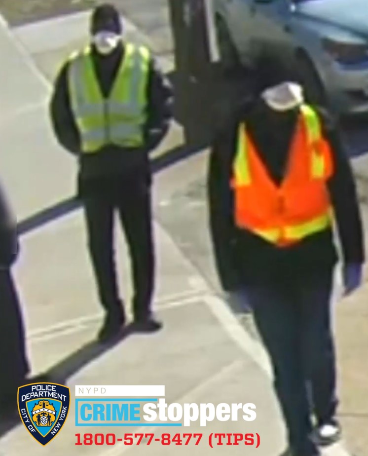The men, who were wearing dark colored clothing and safety vests, approached a 41-year-old man at the entrance to his property in the vicinity of 95th Avenue and 83rd Street at around 11:15 a.m. on Feb. 28.