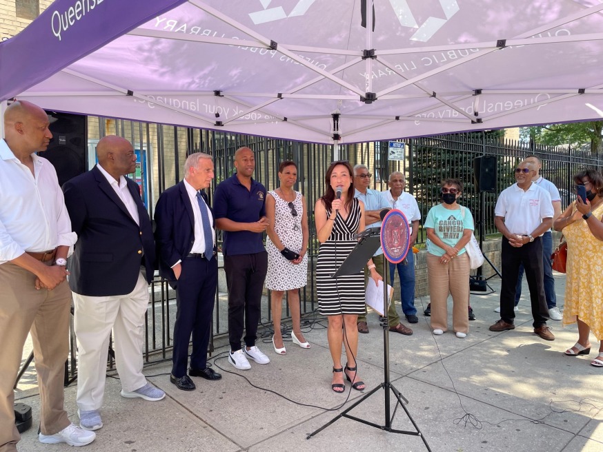 Councilmember Linda Lee and New York City Council Speaker Adrienne Adams held a press conference at the branch Tuesday to announce the funding.