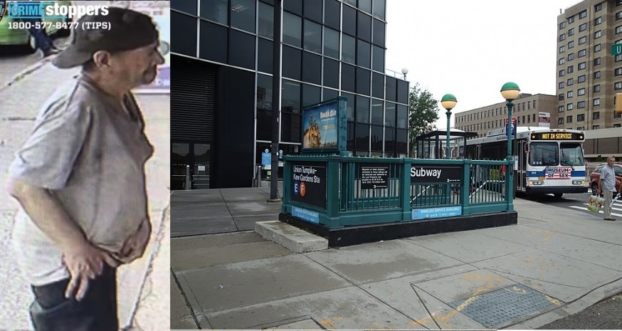 The police have released a photo of a man (L) who allegedly pushed a woman down a flight of stairs at the Union Turnpike-Kew Gardens subway station on Aug. 22 (Photos courtesy of NYPD and Tdorante10 CC BY-SA 4.0)