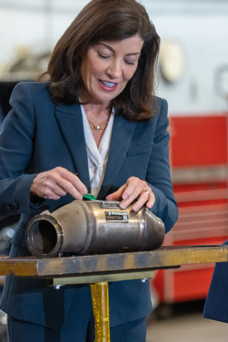 Governor Kathy Hochul announced a crackdown on catalytic converters and auto theft on Oct. 17 by targeting unauthorized and illegal vehicle dismantlers that operate chop shops. She signed legislation that imposes restrictions on the purchase, sale and possession of catalytic converters by vehicle dismantlers and scrap processors.