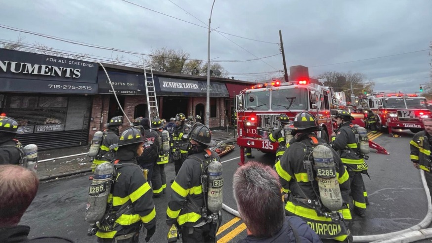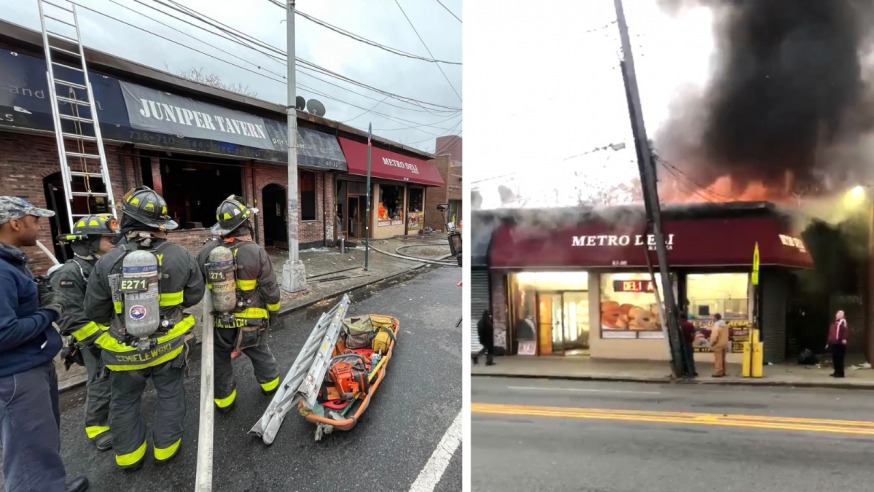 The fire spread into an adjacent bar that previously housed the now-shuttered Juniper Tavern Bar, located at 67-32 Metropolitan Ave.