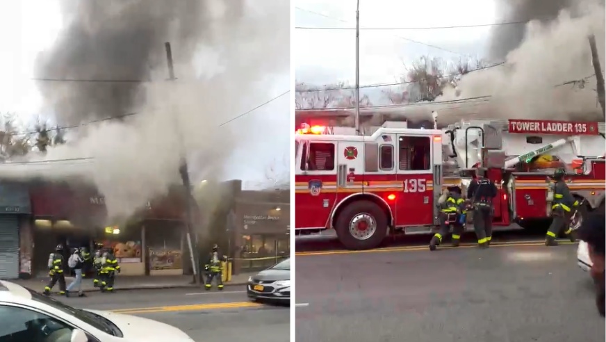 Video also shows heavy smoke billowing onto Metropolitan Ave. which was busy with pedestrians and rush-hour vehicular traffic.
