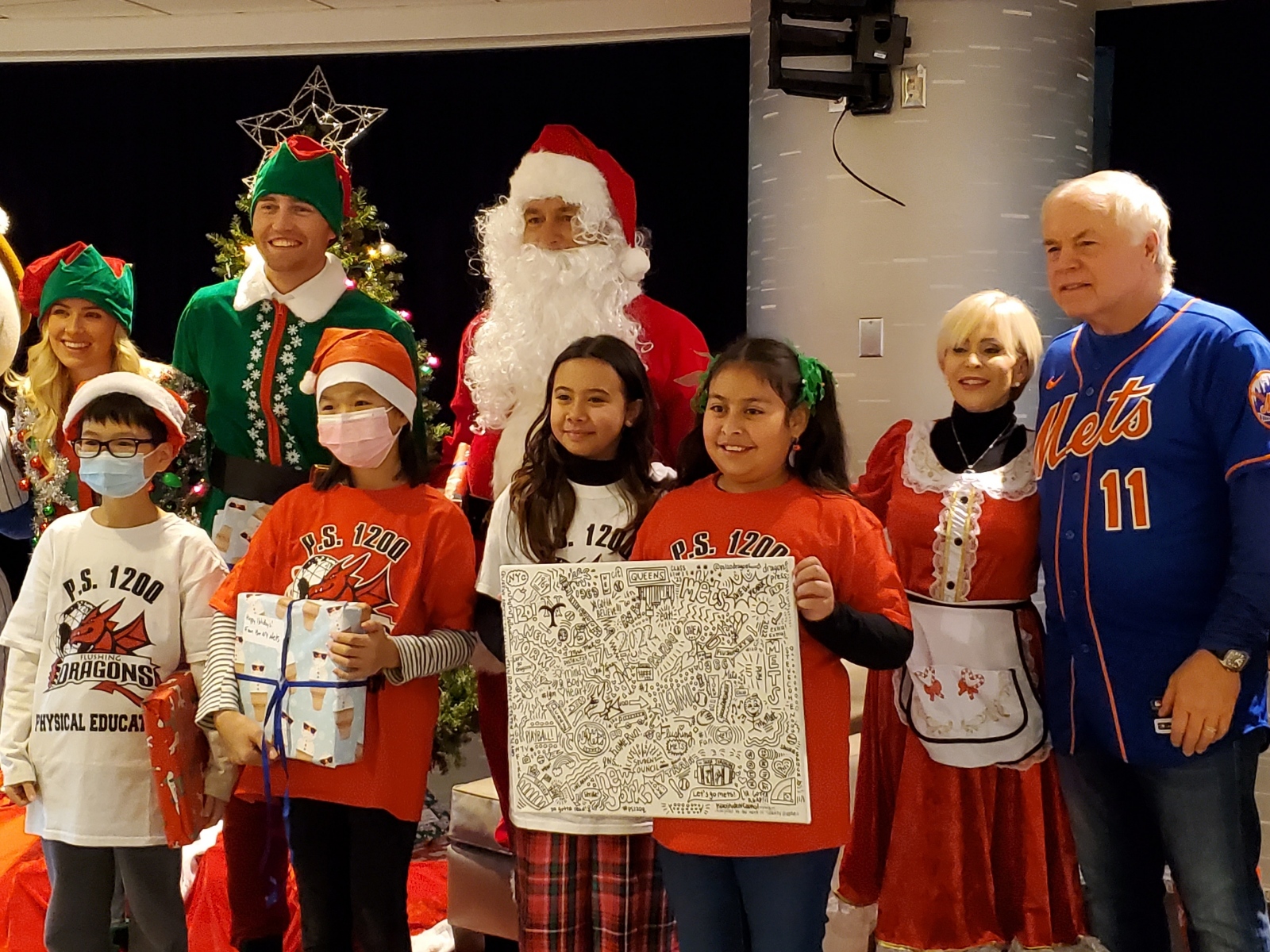 The New York Mets held their annual Kids Holiday Party on Thursday, Dec. 15, at Citi Field’s Piazza Club, where a total of 125 students from five local Queens Title 1 schools — P.S. 307Q, P.S. 110Q, P.S. 19Q, P.S. 13Q and P.S. 120Q — put on holiday performances and enjoyed lunch, games, trivia questions and gift giveaways.