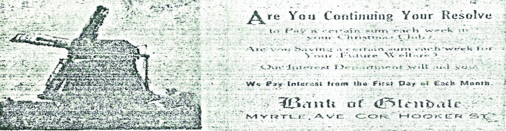 The Bank of Glendale was located at what was then 2681 Myrtle Ave., at the northwest corner of Myrtle Avenue and Hooker Street (present-day 66th Place). Hooker Street was named for Major General Joseph “Fighting Joe” Hooker, who commanded forces in the Union Army during the Civil War and died in Garden City, Long Island, on Oct. 31, 1879.