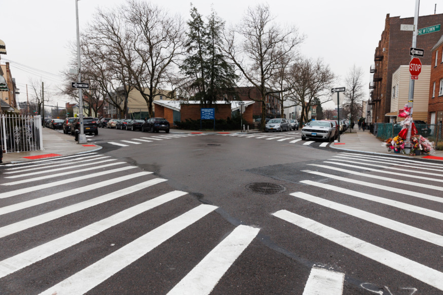The intersection of Newtown Road and 45th Street in Astoria on Thursday, March 2, 2023, where 7-year-old Dolma Naadhun was fatally struck by a driver (Photo by Paul Frangipane)