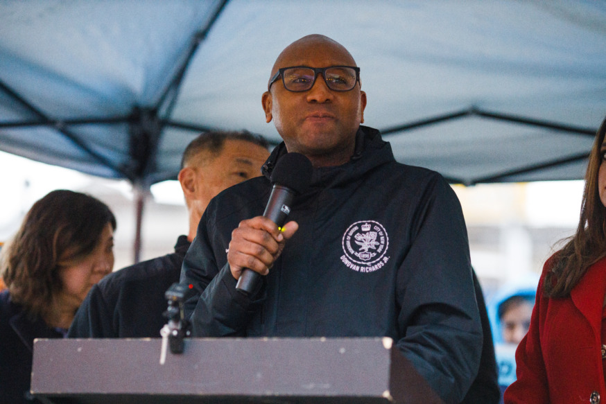 Queens Borough President Donovan Richards speaks at the event (Photo by Paul Frangipane)