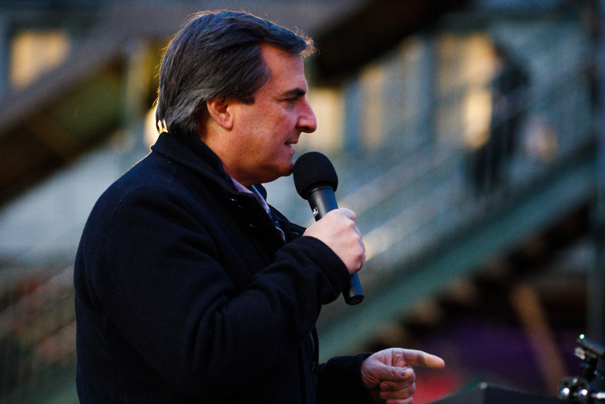 State Sen. Michael Gianaris speaks at the rally against anti-Asian hate at Corona Plaza on Friday, March 10, 2023 (Photo by Paul Frangipane)