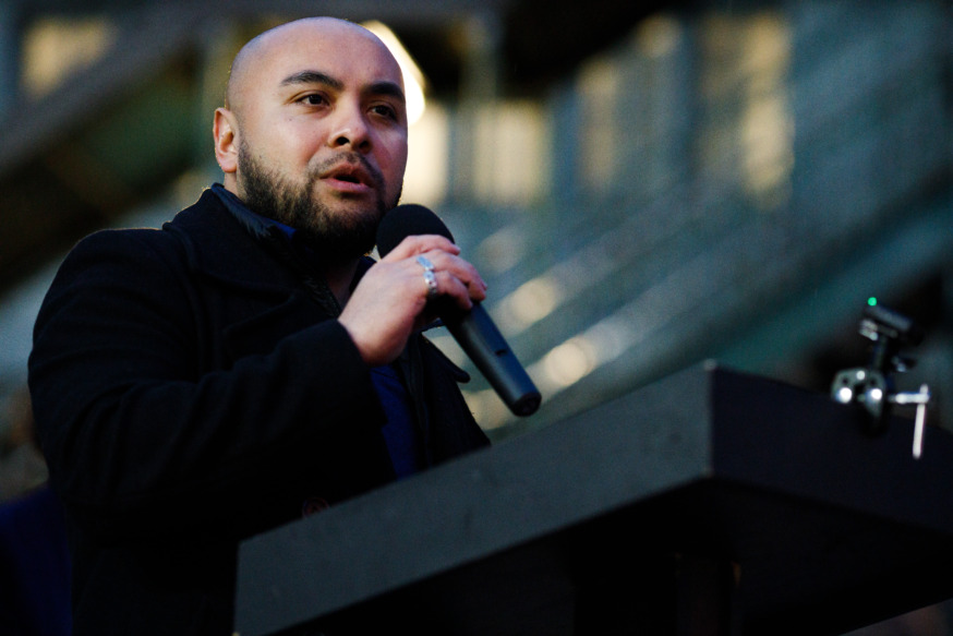 Assemblymember Steven Raga speaks at the rally against anti-Asian hate at Corona Plaza on Friday, March 10, 2023 (Photo by Paul Frangipane)