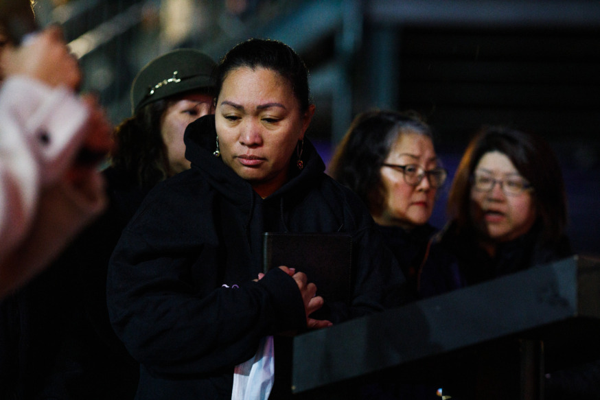The rally was held at Corona Plaza, which is situated a few blocks away from where Cecille Lai, 44, and her son Kyle Lai, 24 were allegedly kicked and punched in the head by three suspects on March 2.
