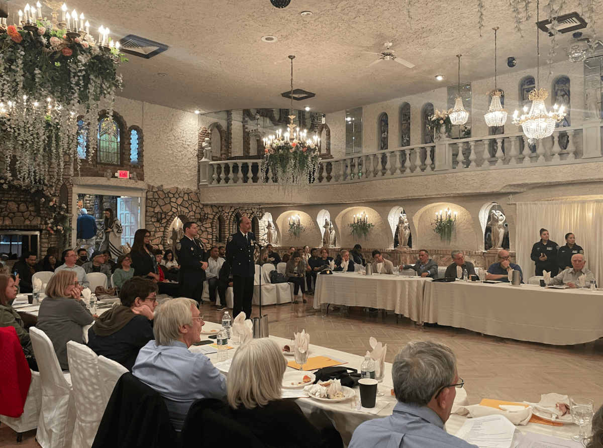 New York City Sheriff Anthony Miranda addressed Community Board 9 members’ concerns about the proliferation of illegal cannabis smoke shops during a public meeting held at the Villa Russo in South Richmond Hill on Tuesday, April 11.