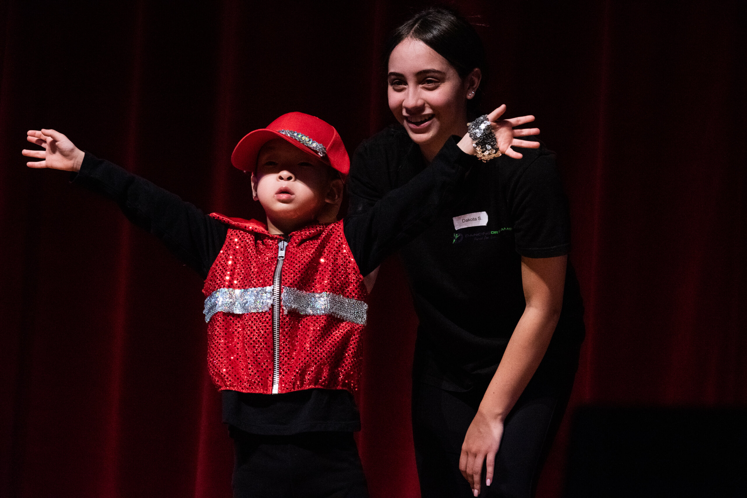 Each dancer is paired with a teen “Helper” — a high school student enrolled in the Dancing Dreams Leadership Program — and physical therapists teach the dance classes.