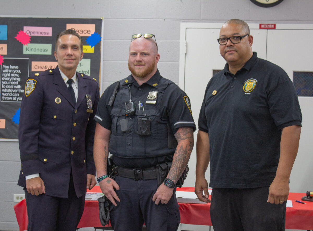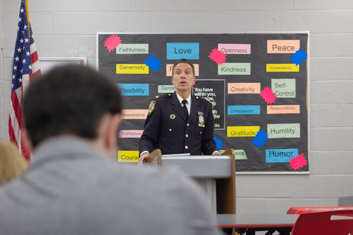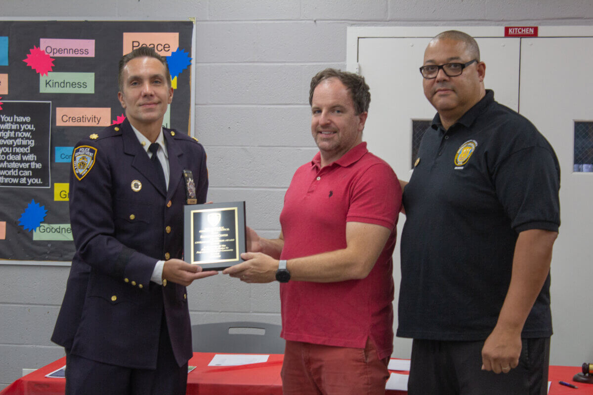 Coleman first handed the precinct’s Civilian Recognition Award to the Knockdown Center’s Executive Director Tyler Myers. The art and performance space allegedly helped the 104th Precinct in the arrest of a group of repeat pickpockets, according to Coleman.