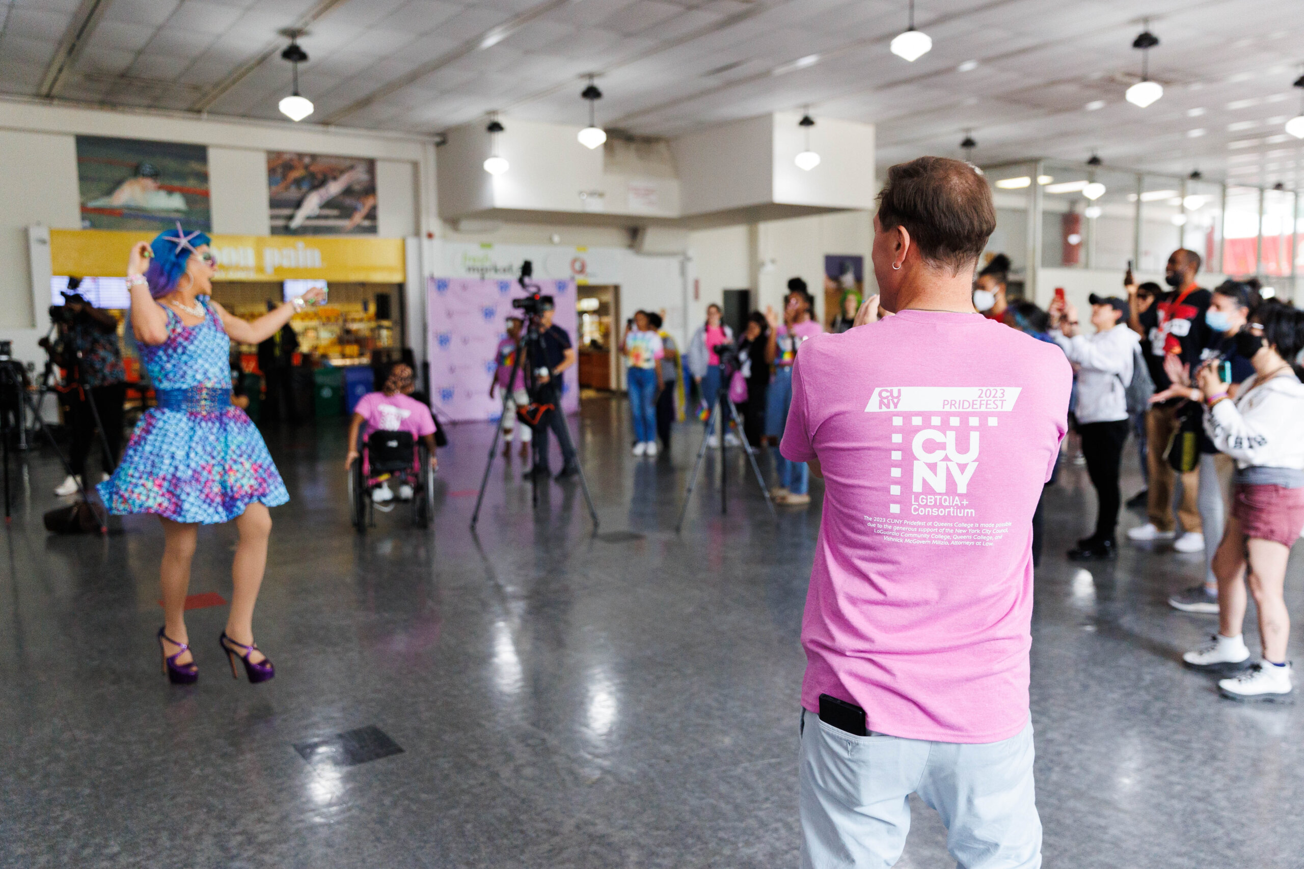 The event, held at the Queens College Dining Hall, featured musical, dance, DJ and drag performances, stilt walkers, face painting, a photo booth, a Pride in the Sky activity and much more.