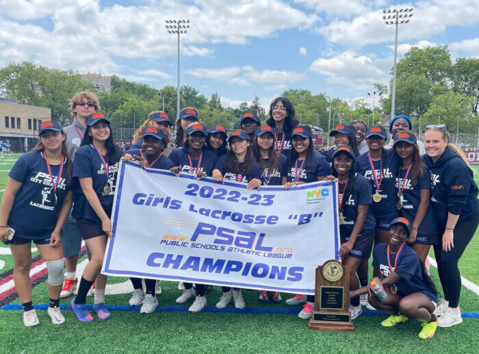After an undefeated season, the Beach Channel Educational Campus’ Lady Dolphins Lacrosse Team are champions. Last weekend, the Lady Dolphins from Division A South faced off against Bayside High School from Division A North in a hard-fought battle that left the Rockaway high school team victorious 10-8 and crowned them the 2022-2023 Public School Athletic League City Team champions.