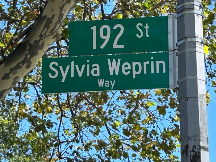 “I am honored to co-name the intersection of 67th Avenue and 192nd Street in honor of Sylvia Weprin, a pillar of our Eastern Queens community,” Lee said. “Sylvia’s counsel and mentorship shaped the neighborhoods around us and cultivated generations to serve and lead in our city’s cultural, civic and political life. I hope this co-naming serves as a monument to her legacy and helps inspire generations to come.”