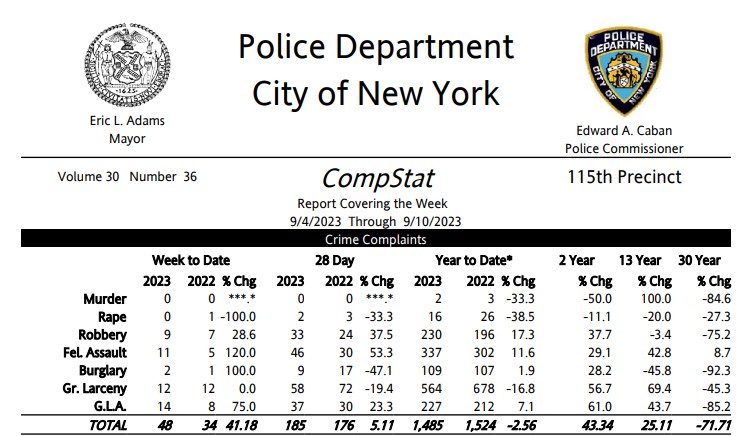 There have been 564 reported incidents of grand larceny in the 115th Precinct this year, down 16.8% compared to the same time last year, according to police data.