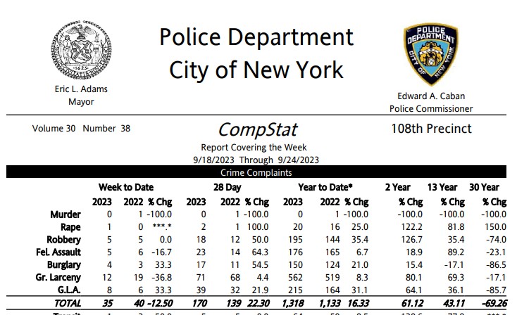 There have been 176 felony assaults in the 108th Precinct so far this year through Sept. 24, up 6.7% compared to the same time last year, according to police data.
