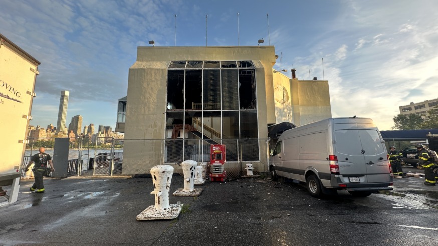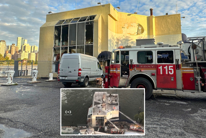 The blaze broke out at 4-01 44th Dr. — the site of a dilapidated former restaurant called Waters Edge that sits atop a barge — and the FDNY responded to the scene after receiving a 911 call at around 6:45 a.m. an FDNY spokesperson said.