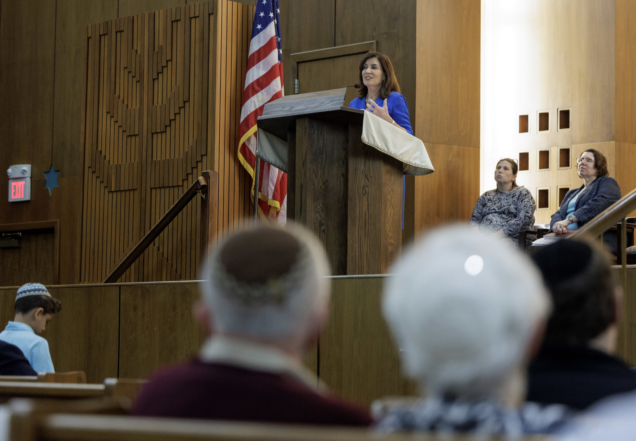 The governor also told the congregants that state police were activated here on the homefront to protect synagogues and yeshivas in New York City and other locations including cultural institutions and museums.