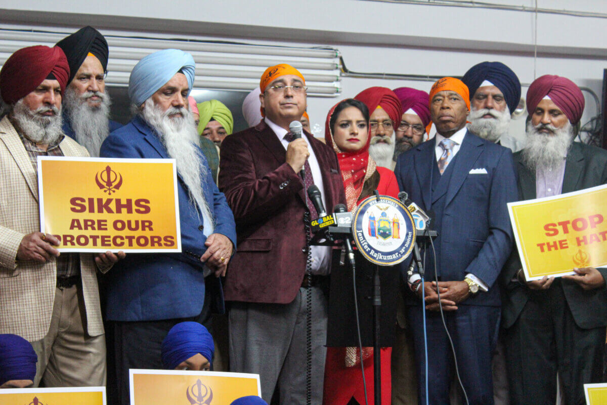 In the wake of a string of attacks on people of the Sikh faith, Mayor Eric Adams joined Assemblymember Jenifer Rajkumar and Sikh leadership at a temple in South Richmond Hill to call for an end to hate crimes against Sikhs.