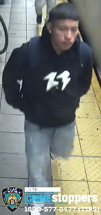 The NYPD released surveillance video on Nov. 20 that shows the suspect walking along the platform. He was last seen wearing a black hooded sweatshirt, blue jeans and white sneakers.