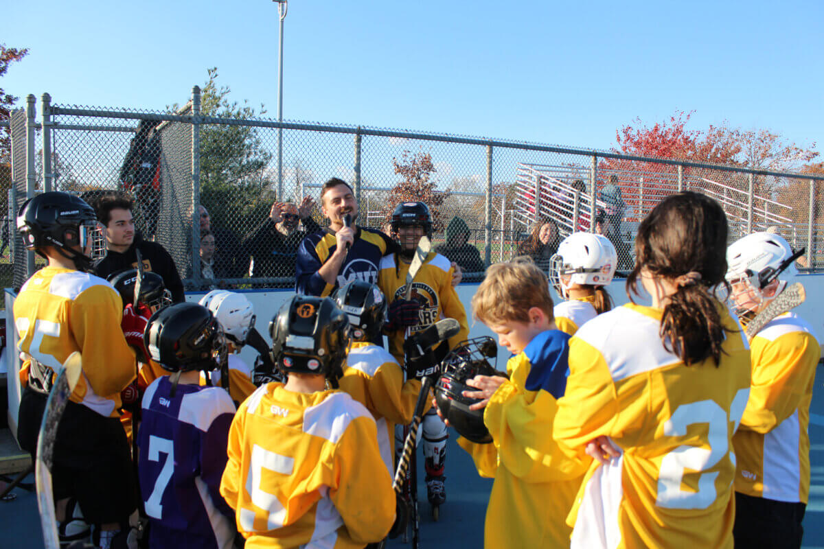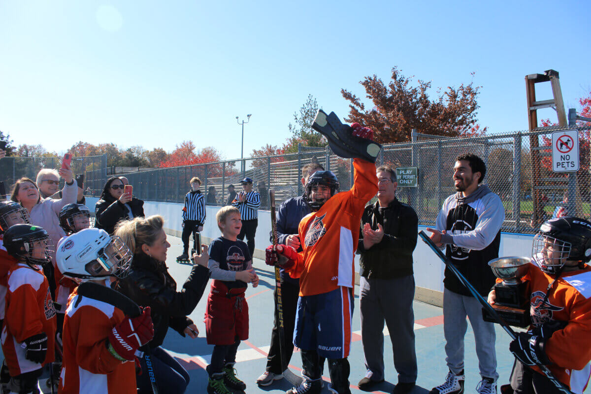 Thanks were also shared with Lauren Rottenberg for singing the national anthem for the game, as well as the first league’s founder Eileen Moloney, coaches, parents, players and sponsors of the league who made it possible for roller hockey to return to Middle Village.