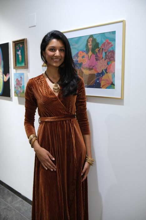 “Ancestral Nourishment began as a series of work that I’ve been creating as a visual artist and I wanted it to be more than a series,” Choudhary said. “I wanted to build community around it and that’s when I decided to make it the theme of this group exhibit. So much of our daily responsibilities and the heaviness of current events in our world deplete and weigh on us. Through this exhibit, I want people to tune into the power of our ancestors and to leave the space feeling collectively energized and nourished. This show reminds us that we’re not alone and that we have a whole community of care and compassion around us—of neighbors, friends, family and ancestors.”