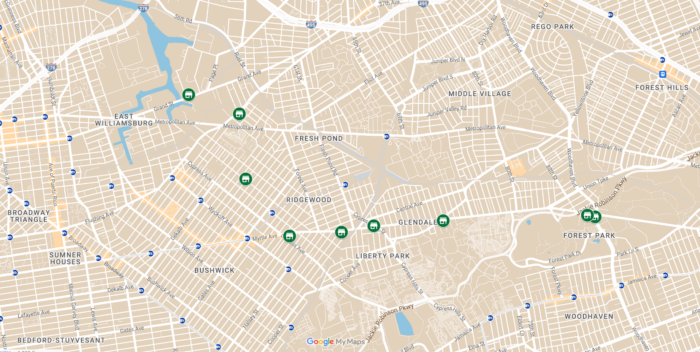 The potential sites for adult-use cannabis dispensaries given the go-ahead from the cannabis committee include 83-34 Woodhaven Blvd., in Glendale, 60-42 Myrtle Ave., and 465 Onderdonk Ave., in Ridgewood, as well an applicant filing to open a microbusiness at 58-45 47th St. in Maspeth.