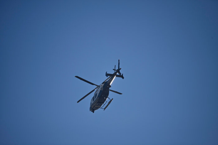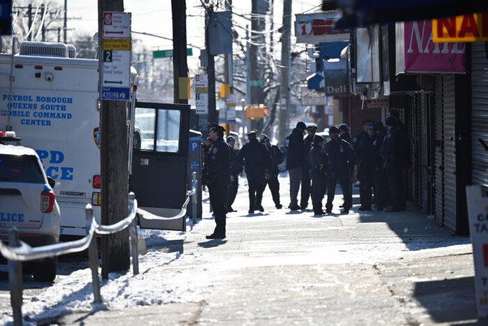 With NYPD aviation overhead and police flooding the streets of Springfield Gardens on Wednesday morning, a manhunt was on for a suspect who allegedly stabbed two men near the intersection of Guy R. Brewer Boulevard and 134th Avenue at around 7:30 a.m.
