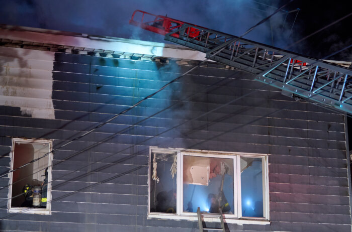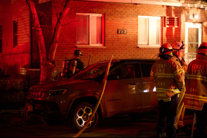 The FDNY transmitted a second alarm, bringing 25 units and 106 firefighters and EMS personnel to the scene. Nearby residents said the building had been undergoing construction in recent weeks and firefighters were evacuated from the rooftop due to sagging conditions towards the rear of the home. Firefighters could be seen through a second-story window pulling down ceilings after flames breached the cockloft, the area between the roof and ceiling.