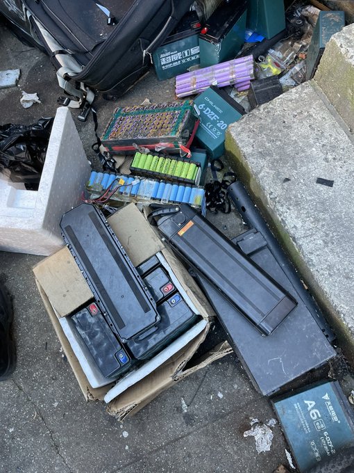 An FDNY Hazmat unit responded to the scene Tuesday and packed five metal drums to safely remove the uncertified batteries after some began to fail and ignite and had to be extinguished.
