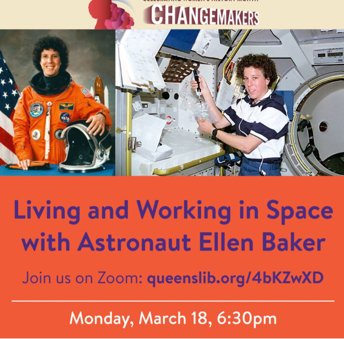 The Queens Public Library is hosting a virtual round table with retired astronaut Dr. Ellen Baker tonight at 6:30 p.m. as part of their Women’s History Month programming.