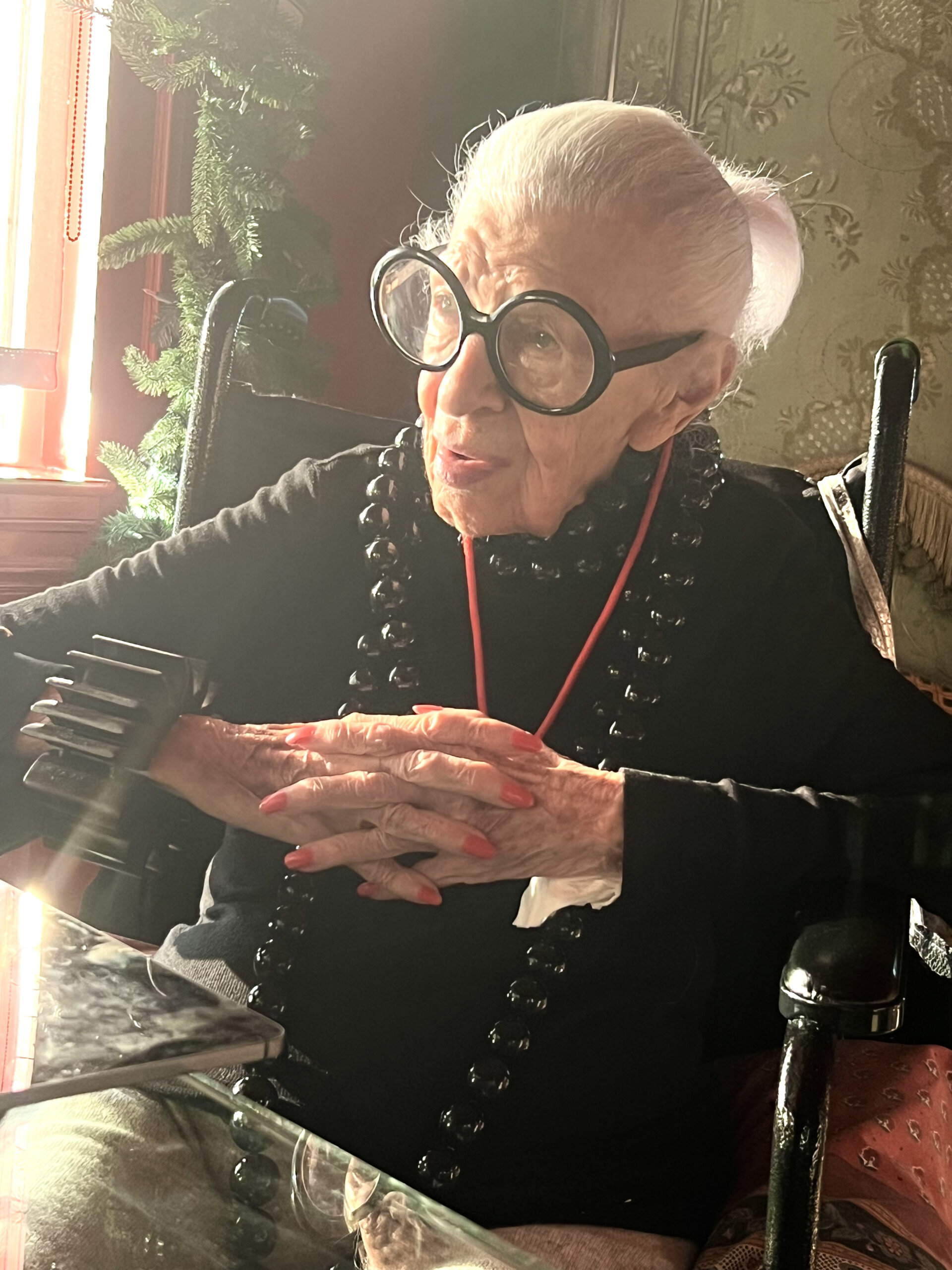 I think Iris is an inspiration who, although she had no family, was surrounded by people who adored her and recognized her genius. It was fun to go with her to visit her friend, Christie Brinkley in the Hamptons, who hosted a birthday celebration for her. There were many boldface people at the party, but everybody wanted to talk to Iris.