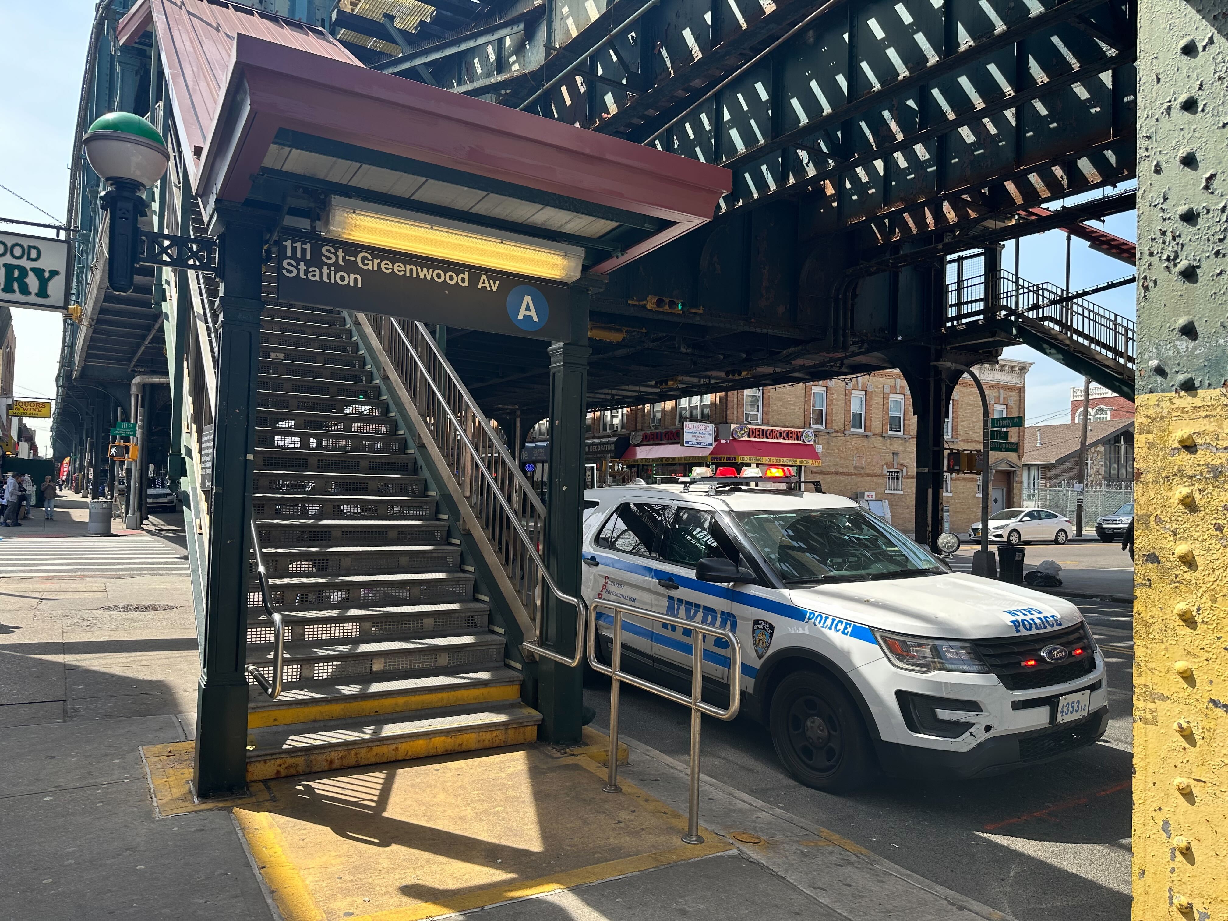 The MTA suspended service on the elevated A train between the Rockaway Boulevard and Ozone Park-Lefferts Blvd subway stations as the NYPD investigation unfolded below.