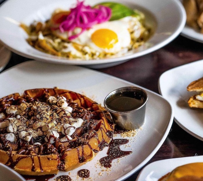 The aptly named Mom’s Kitchen and Bar serves an all-day brunch, signature cocktails and specialty milkshakes. Some menu options are standard brunch fare, like chicken and waffles and avocado toast, while other offerings are more unique. Bedrock pancakes — with fruity pebbles, berry maple syrup and whipped cream — may be a good choice for moms with a sweet tooth, while the mac-and-cheese pancakes might be an appealing option for others. Either way, Mom’s Kitchen and Bar has fun menu options for your Mother’s Day brunch.