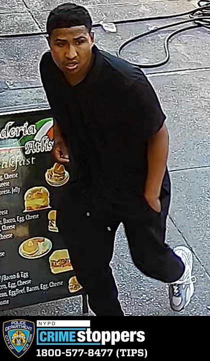 The NYPD released a surveillance photo of the suspect early Thursday morning and described him as having a medium complexion. He was last seen wearing a black t-shirt, black sweatpants and white sneakers.