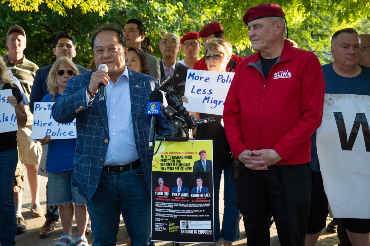 Following the horrific incident where a 13-year-old girl was raped in Kissena Corridor Park in Flushing last Thursday, former NYC mayoral candidate Curtis Sliwa, several GOP candidates, and community leaders held a rally in the park on Monday evening. They called for increased protection for children in Flushing after the attacker forced the victim and her friend into a wooded area at knifepoint, tied them up, and committed the heinous crime.