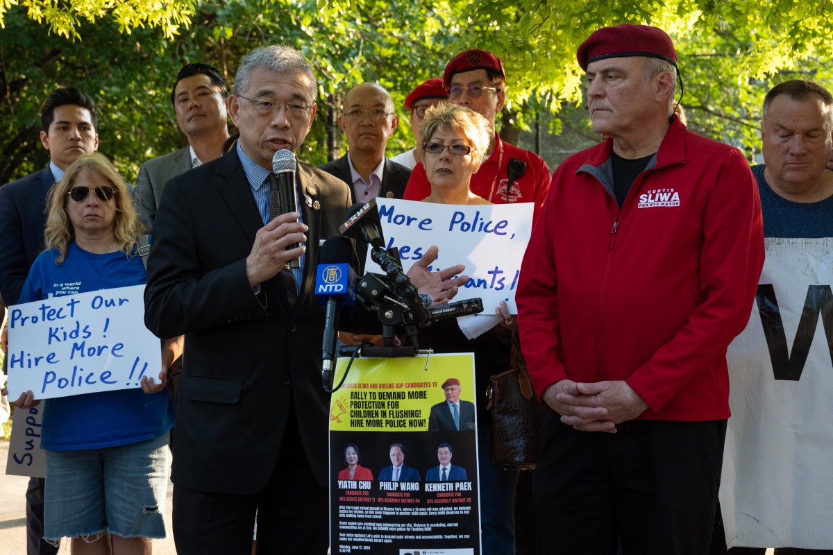 Dr. Philip Wang, who is running for state Assembly in the 40th District, also supported the rally’s “law and order” sentiment and claimed that the “streets were getting unsafe.”