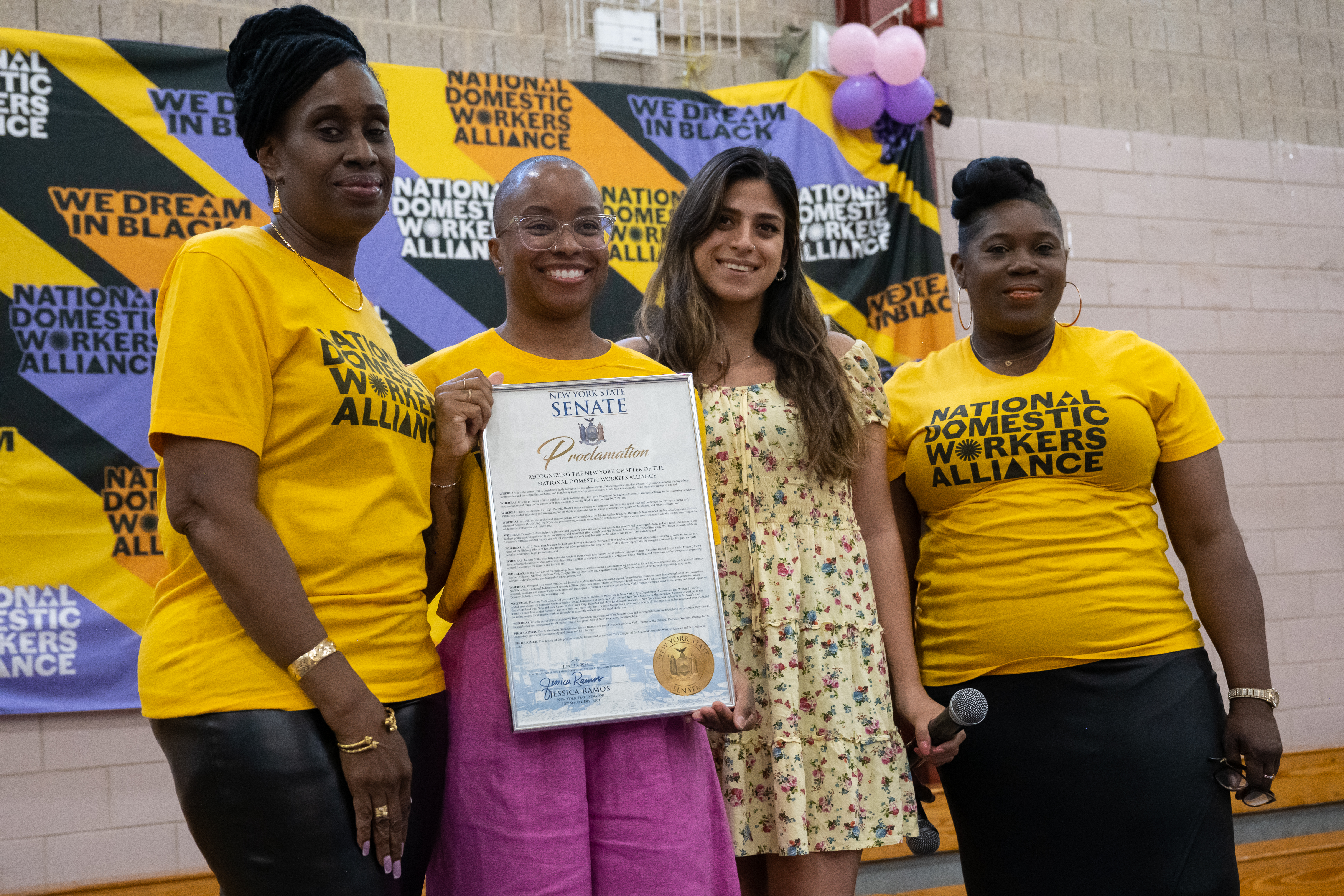 State Senator Jessica Ramos’ Director of Operations, Mashaal Bhatti, presented a proclamation recognizing the New York Chapter of the National Domestic Workers Alliance and Dorothy Bolden on behalf of the senator.